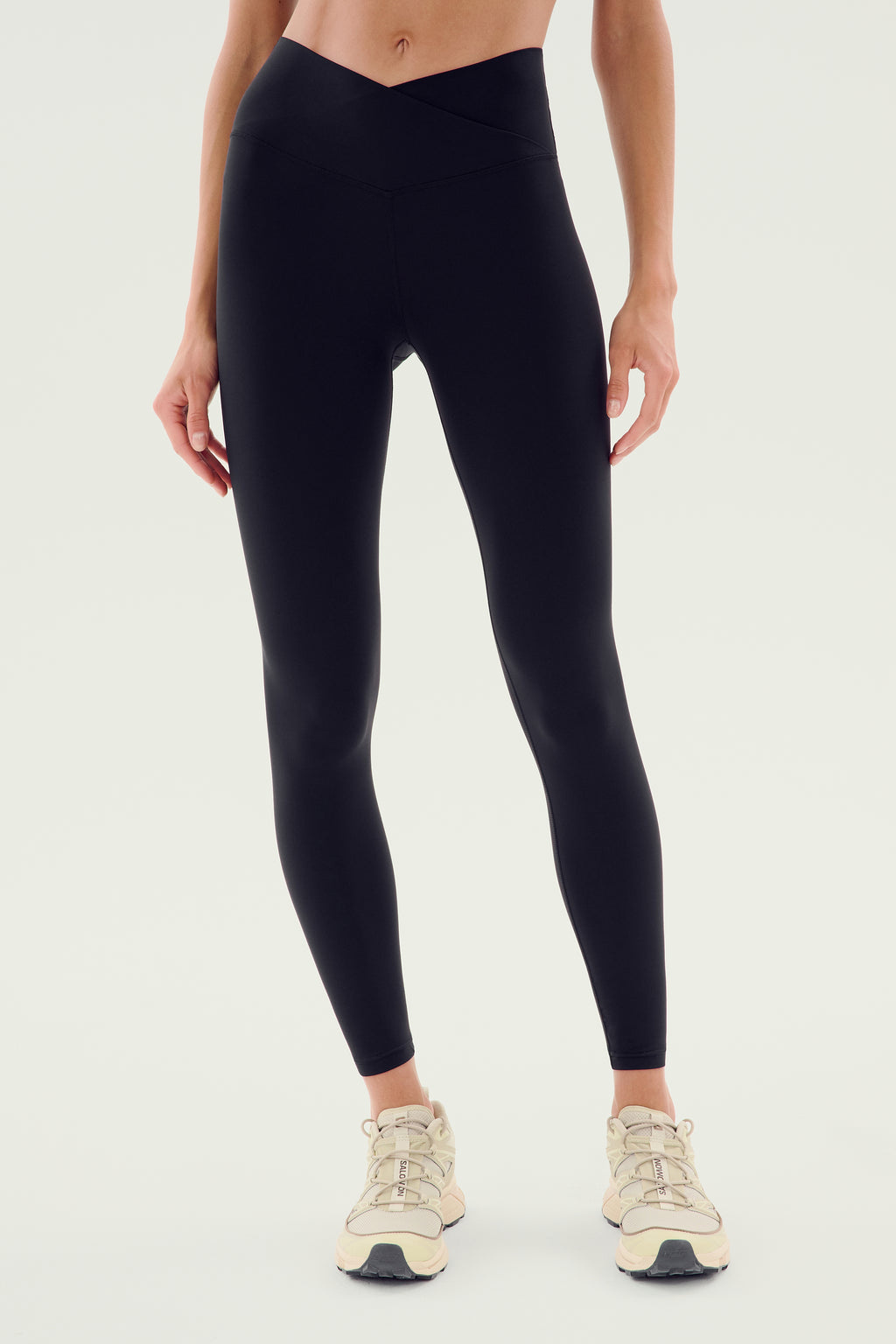 A sexy crossover waist band makes this sleek, form fitting high waist 7/8 legging a must have for your workouts. Our all Rigor fabric offers superior performance and second skin comfort.