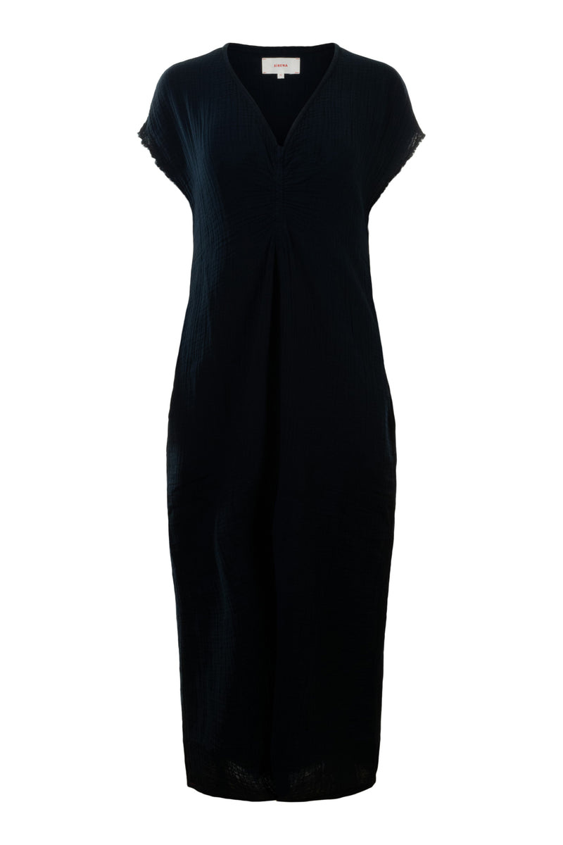 Drue is a fully lined halter maxi dress with braided trim, front keyhole cutout, and braided ties adorned with multicolor yarn and suede tassels.